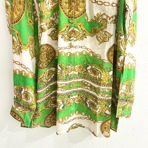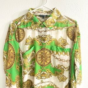 NWT Fashion Nova Crunching The Numbers Printed Shirt - Green/combo Size L