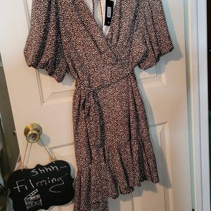 NWT Fashion Nova Dottie Printed Mini Dress - Brown/White combo, Size: 1X