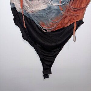 NWT Fashion Nova Just My Vibe Distressed Bodysuit Size 2X Rust/Combo
