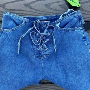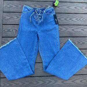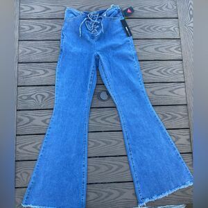 NWT Fashion Nova Laguna Beach Lace Flare Up Jeans 7 medium wash bootcut wide leg