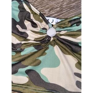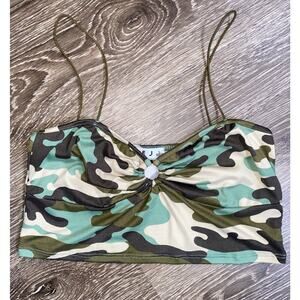 NWT Fashion Nova Large Green Camo Print Tank Crop Top Keyhole Bralette Ruched