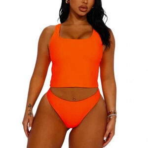 NWT Fashion Nova Maui Mid Rise Cheeky Bikini Bottom Bright Orange Size XL