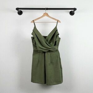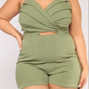 NWT Fashion Nova Plus Size Make A Wishlist Woven Cutout Romper Green