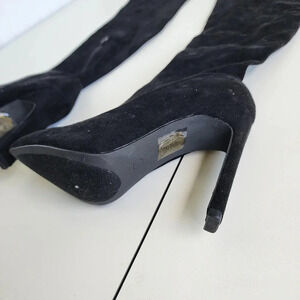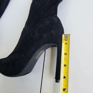 NWT Fashion Nova Size 6 Black Faux Suede Over The Knee High Heel Boots
