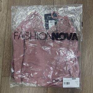 NWT Fashion Nova Size M Bedroom Cuddle Pajama Set Ribbed Lace Detailing Rose