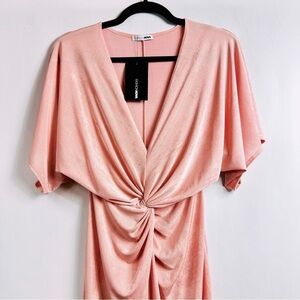 NWT Fashion Nova Sz Medium Pink V-Neck Dolman Sleeve Front Split Ruched Dress