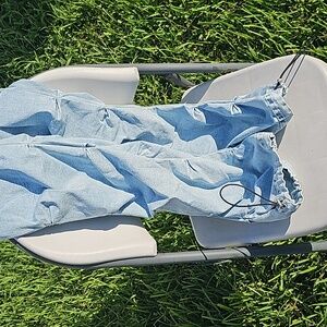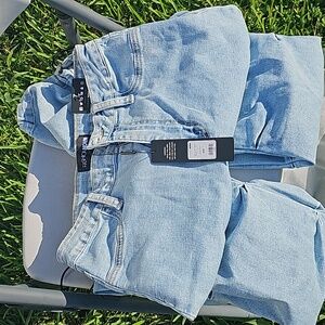 NWT Fashion Nova Women's Catch My Vibe Stacked Straight Leg Jeans in LightBlue 7
