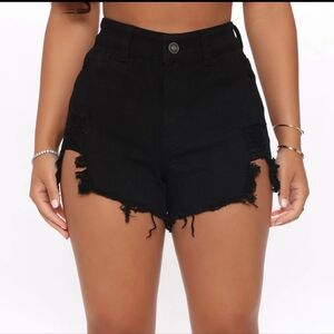 NWT Fashion Nova black ripped distressed denim jean shorts size 1