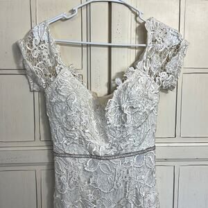 New with tags Fashion Nova size small ivory lace gown. Absolutely beautiful if you want to save on a wedding dress. Rhinestone detail across the front of the waist. Measures 16” from armpit to armpit. 15” across the waist and it is about 62” long.