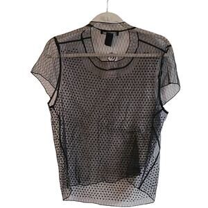 NWT Fashion to Figure Studded Sheer Mesh Blouse Black Plus Size 0X Statement Top