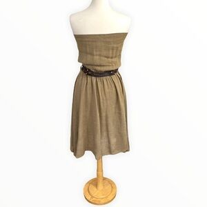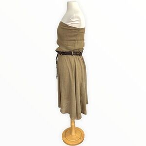NWT Fashionista Khaki Strapless Flared Dress Linen Blend Macrame Belt