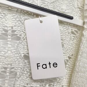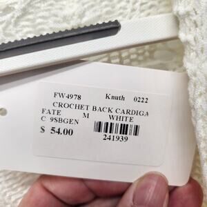NWT Fate Creamy White Crochet Back Knit Sweater Open Cardigan Women's M