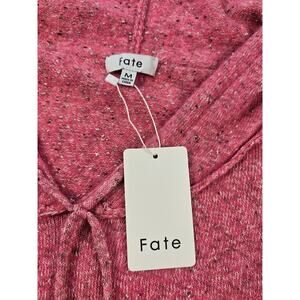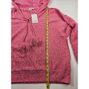 NWT Fate Pink Oversized Hooded Speckled Pull Over Pom Pom knit sweater M winter