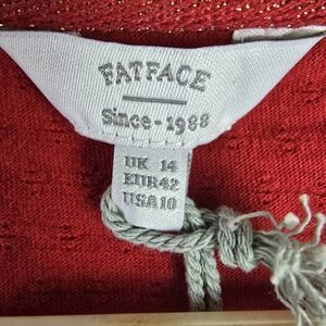 NWT Fatface Womens lris Pointelle Cotton Red Ruched Long Sleeve V-Neck Size 10.