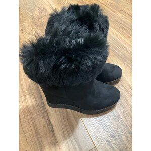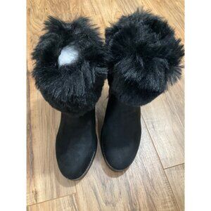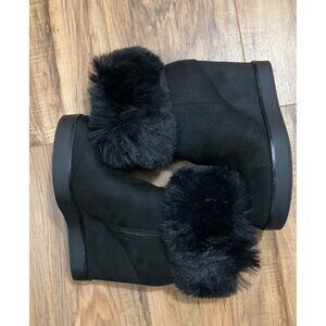 NWT Faux Fur Lined Wedge Bootie - Black Suede Size 8