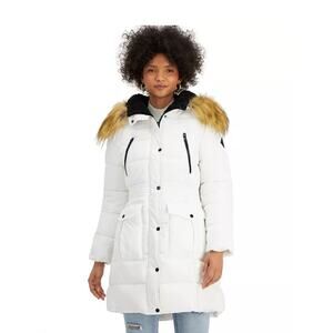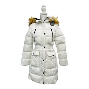 NWT Faux -Fur Trim Hooded Puffer Coat in White