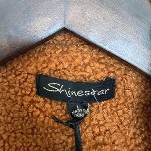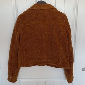 NWT Faux Shearling Moto Teddy Jacket Large Cognac Cropped Sherpa Lined Cozy