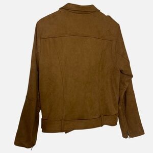 NWT Faux Suede Camel Moto Jacket Zip Belted Biker Style Epaulet Stretch Women L