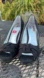 NWT Faux Suede Patent Leather Black Peep-Toe Platform Heels