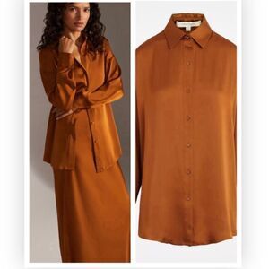 Favorite Daughter The Smooth Ex-Boyfriend caramel Satin Shirt size Small