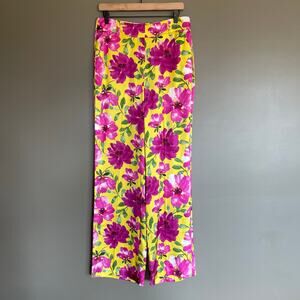 NWT Favorite Daughter Fiona Floral Satin Wide Leg Pants Sz 10 Yellow Pink Floral