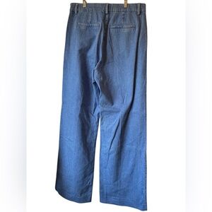 Sweeping wide legs and a high-rise waist make an incredible match on these nonstretch denim pants perfected by a flat front.