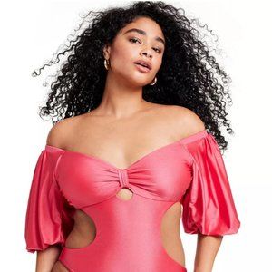 NWT Fe Noel Metallic Puff Sleeve Cut Out Medium Coverage One Piece Swimsuit