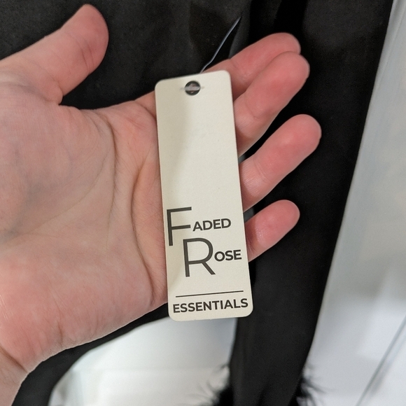 NWT Feather Cuffed Long Sleeve Black Bodysuit by Faded Rose Essentials Size L