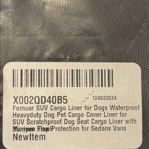 NWT Femuar SUV Cargo Liner Dog Waterproof Heavyduty Dog/Pet Cargo Cover Liner