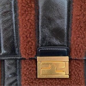 NWT Fendi Kan U Medium Shearling Patent Leather Black and Brown Bag