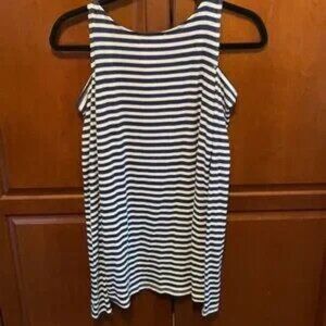 Cutout shoulders. Striped shirt. Long sleeves.