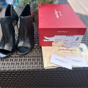NWT Ferragamo Gayle Black Heeled Boots size 8.5