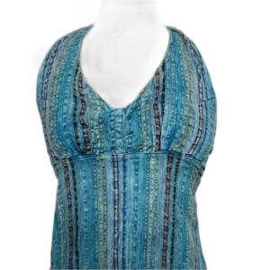 NWT Festival Hippie Gypsy Jayli Handmade Blue Striped Halter Dress - Women M