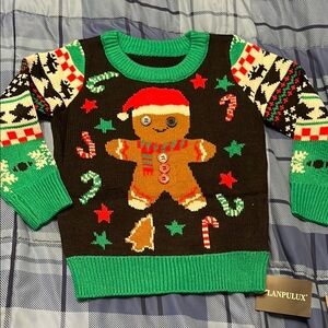 NWT Festive Gingerbread Sweater with Green Accents unisex