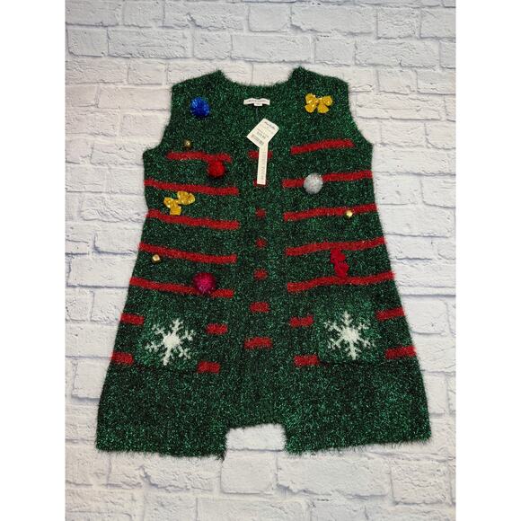 NWT Festive Ugly Christmas Sweater Vest Xmas Tree Sparkly 99 Jane Street A463