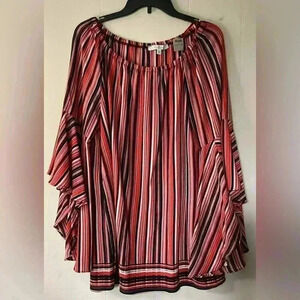 NWT Fever Striped Boho Long sleeve Gothic Top Blouse Size Large Ruffle Sleeve