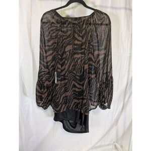 NWT Fever Zebra Print with Lurex Details Long Sleeves with Gathered Shoulders &