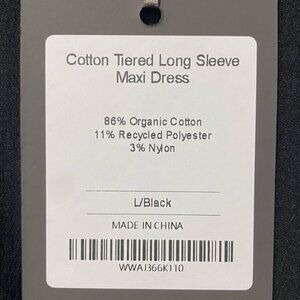 NWT - FibFlx Organic Cotton Tiered Long Sleeve Maxi Dress Black – Size L