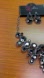 An oversized collection of smoky hematite rhinestones haphazardly link into clustered frames below the collar. Featuring swirls of dainty hematite encrusted frames, the stunningly stacked frames fan out into a flammable sparkle below the collar.