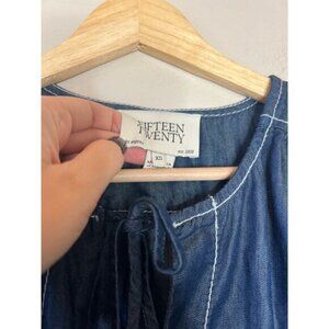 NWT Fifteen Twenty Nadine Bow Detail Short Sleeve Top Blue Size: Extra Small