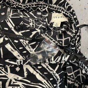 NWT Fifty Street Aztec Print Black and White Pants with Straps Large