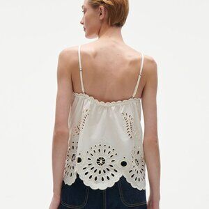 V-neckline with scallop finish Length from Peak Point to Hem: 19 1/2 Adjustable shoulder straps Embroidered body and scallop finish at hemline Lightweight Cotton Poplin FABRIC & CARE 100% Cotton Dry Clean Only Imported
