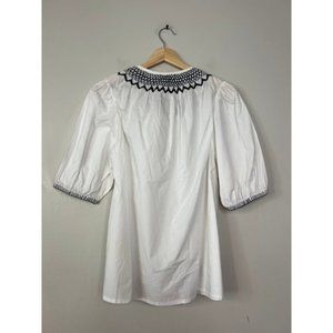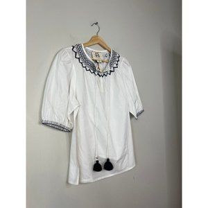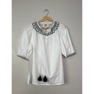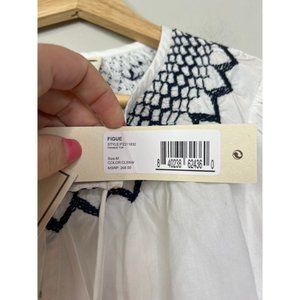 NWT Figue Poplin Embroidered Tassel Corded Frankie Top Clean White Size: Medium