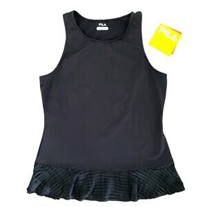 NWT Fila Activewear One Peplum Tank Top Sz M Black Fitted Stretchy 30+ UV Pro