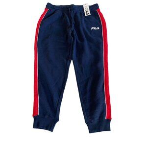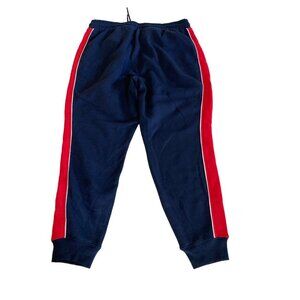Elevate your activewear game with these NWT Fila Women's Vigor Mid Rise Fleece Joggers in stunning Navy Blue Red Stripe. Made with a comfortable cotton blend material and featuring a pull-on closure, these joggers are perfect for gym and training, walking, and running activities. The athletic fit and tapered leg style provide a flattering silhouette, while the colorful and logo theme adds a trendy and stylish touch. These machine washable joggers are part of the Fila product line and are perfect for any athleisure occasion. Available in varying sizes and perfect for plus size women, these pants are sure to become a staple in your activewear collection. Order now and experience the perfect combination of comfort and style!