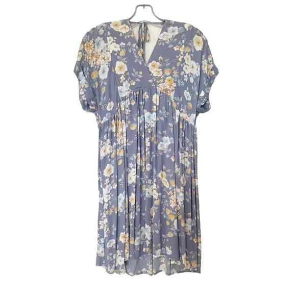 NWT Final Touch Maternity Blue Floral V-Neck Short Sleeve Dress Size Medium