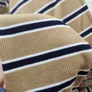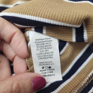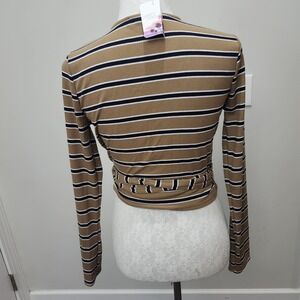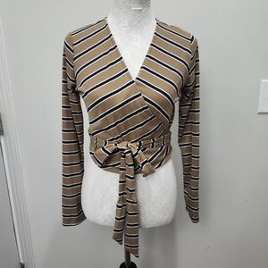 NWT Final Touch Ribbed Knit Tie Front Top M Tan Black White Stripes USA Made