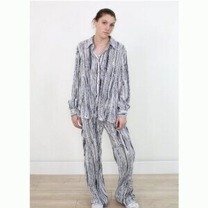NWT Find me Now Augustine Swirl Print Ribbed Flowy Pants in Black White Agate XS
