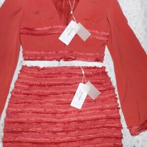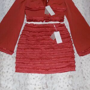 NWT Finders Keepers Orange Fringe Crop Top and Skirt Set