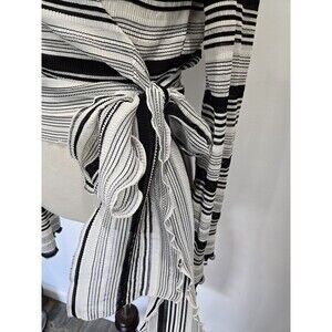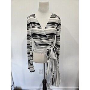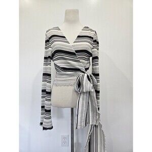 NWT Finders Keepers Striped Black White Bell Sleeve Bow Wrap Blouse Size S